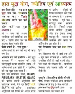 इस महाशिवरात्रि – रुद्र मुद्रा सँग नमः शिवायम मंत्र जप कर – Task Master बनने का करें प्रयास! (Pioneer March 11, सौजन्य: विक्टोरा फॉउंडेशन, फरीदाबाद)